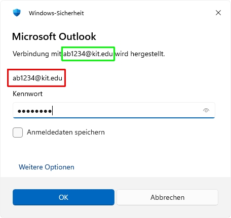 - Sie müssen sich evtl. mit Ihrem KIT-Konto anmelden, z.B. wenn Sie nicht als KIT-Domänenbenutzer an Windows angemeldet sind.
