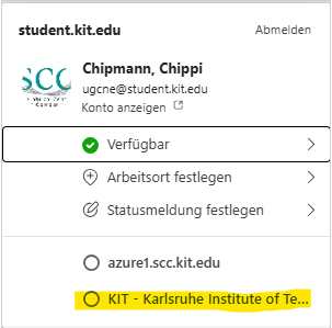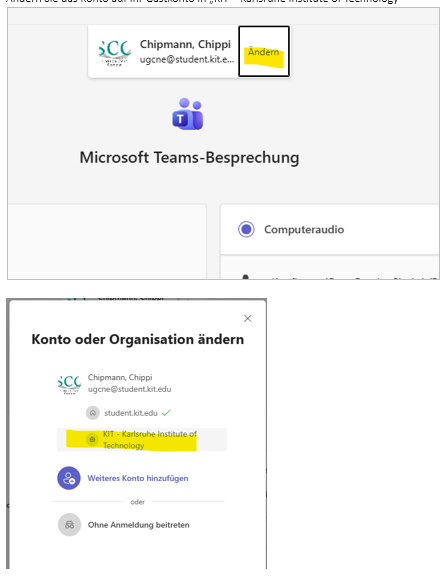 - Ändern Sie das Konto auf Ihr Gastkonto in „KIT – Karlsruhe Institute of Technology“