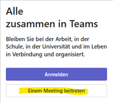 - Sie gelangen im folgenden Fenster mit „Jetzt teilnehmen“ direkt in die Teams-Veranstaltung.